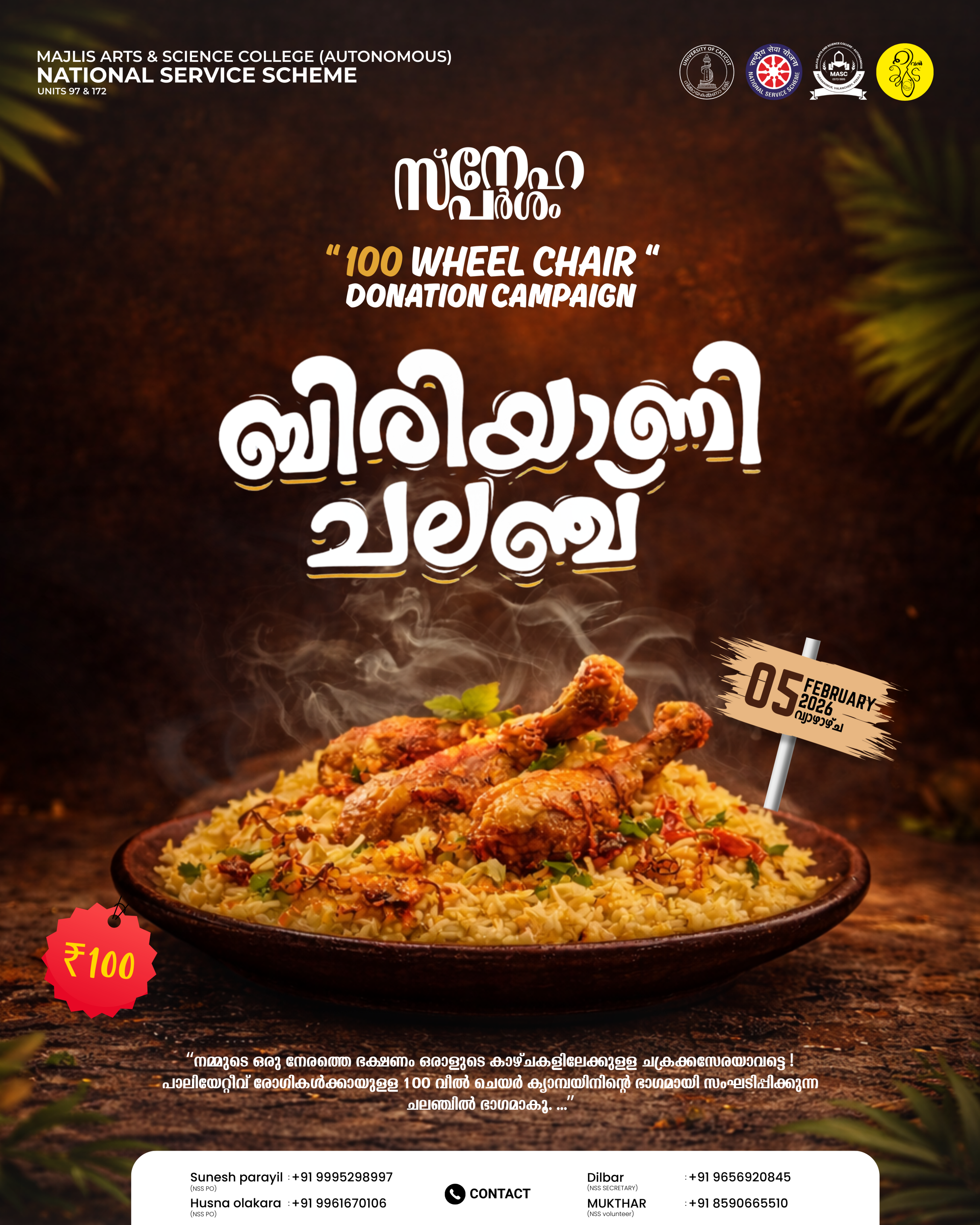 Philanthropy and service are the soul of the National Service Scheme (NSS) of Majilis College. Our volunteers identify the needs of the underprivileged sections of society and extend a helping hand with empathy guided by the motto NOT ME BUT YOU. They work for the holistic growth of society through education, health, environmental protection, and social awareness. This NSS unit learns through service and develops leadership through compassion, proudly shaping socially responsible citizens.
